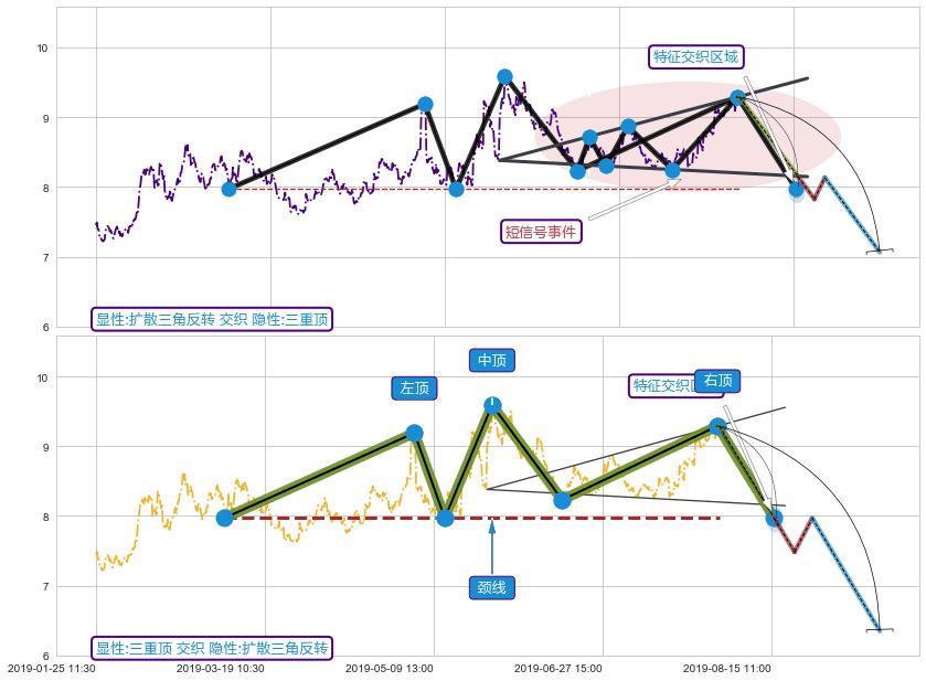 ➢ 扩散三角反转属【短级别信号事件】三重顶属【长级别信号事件】长短周期组合信号事件, 短长事件长度比26.01%