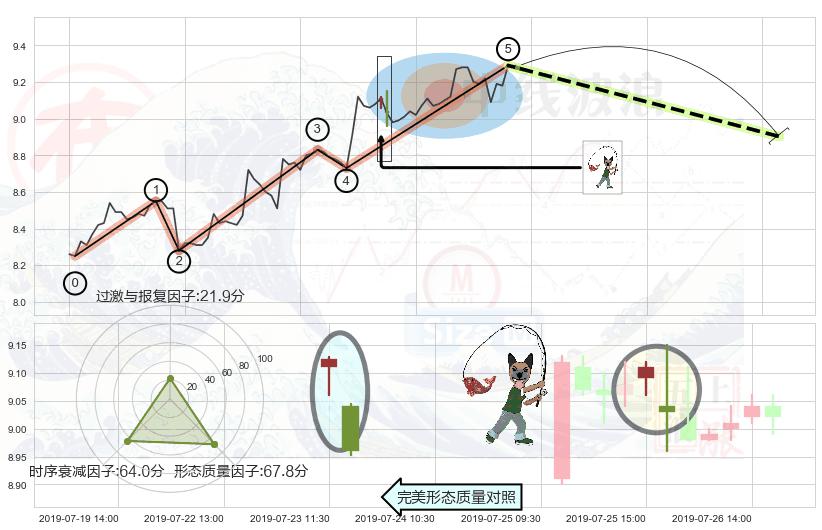 ➢ 🕰 价格走势在2019-07-25 15:00:00至2019-07-26 09:30:00期间形成吊颈线(上吊线),残存影响值:-3.48