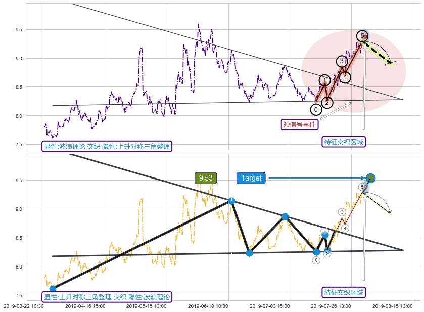 ➢ 波浪理论属【短级别信号事件】上升对称三角整理属【长级别信号事件】长短周期组合信号事件, 短长事件长度比16.96%