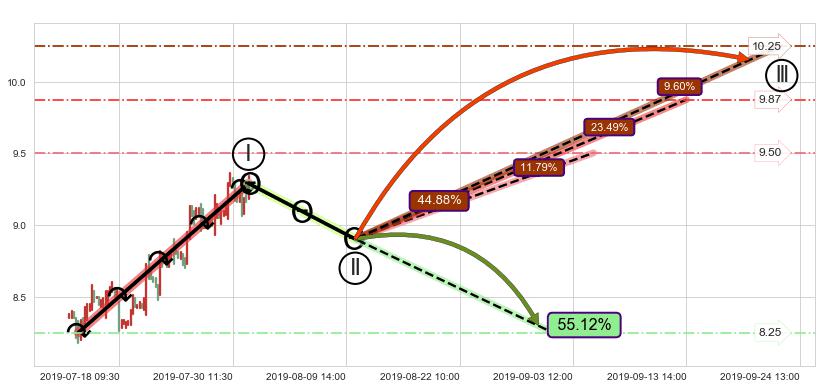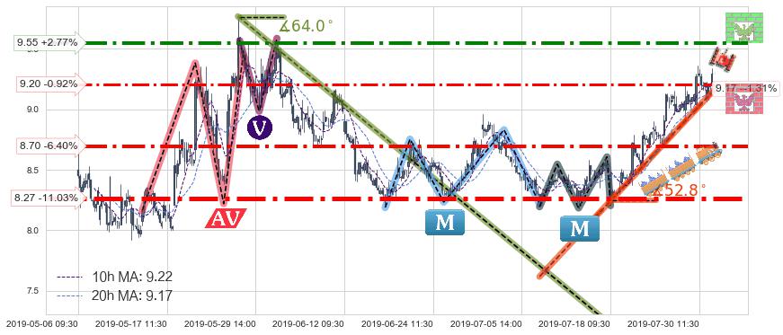 ♘ 阻力价格位9.55,可信任强度71.74%,距离最后交易2019-07-31 15:00形成的收盘价格9.29相差 +2.77%