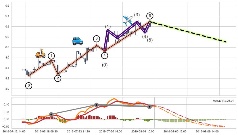 ➢ 【卖0】上涨趋势线在→(08-08:14: 8.70 )被突破,反转趋势形成