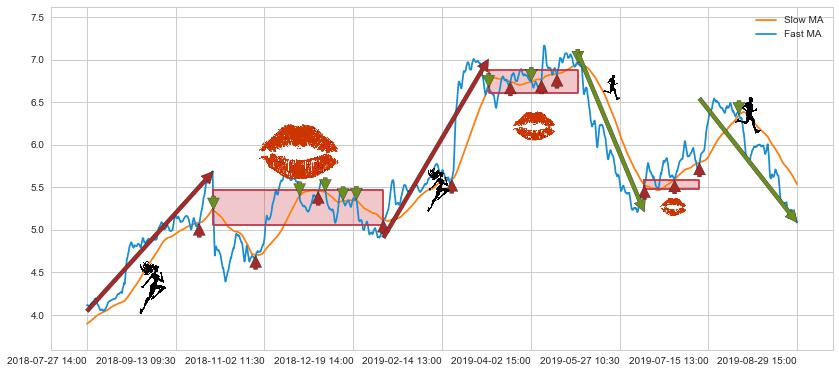 06-10 13:00至07-10 10:30 慢线与快线多次接触,存在上下穿越,有缠绕