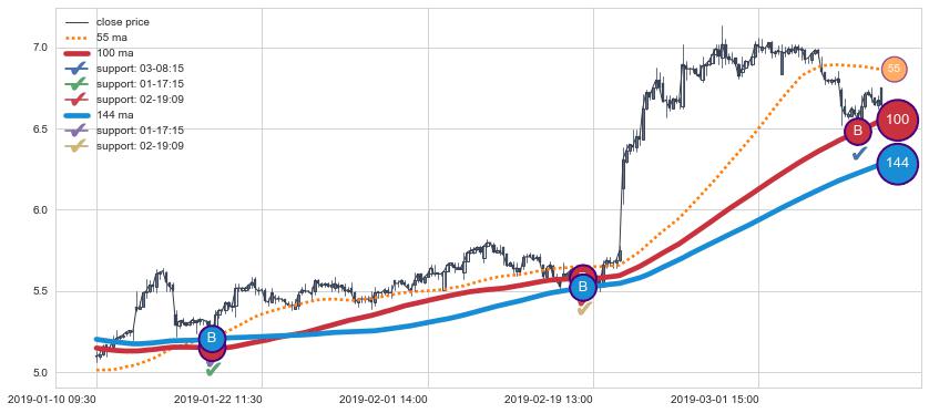 ➢ 最优均线组合共正确确认支撑阻力信号9处,正确确认率 45.00%