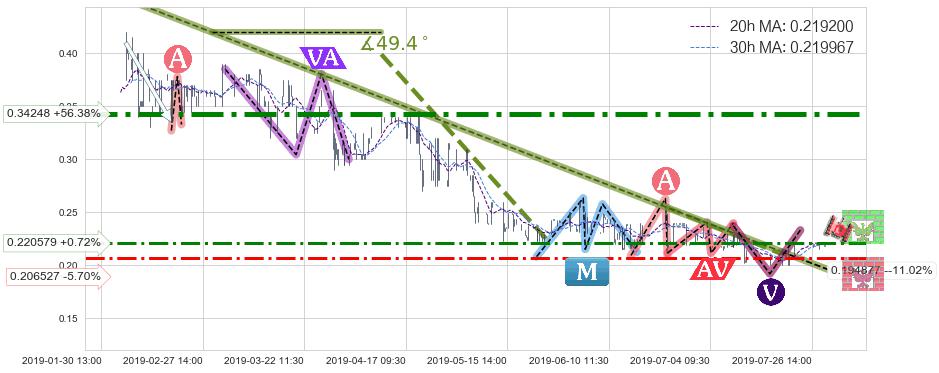 ⚔️ 2019-02-11 09:30-2019-07-19 14:00下跌趋势存在反转上涨[机会],其原下跌趋势的阻力位(0.194877)已被突破[强支撑信号],原下跌趋势角度: 49.4˚