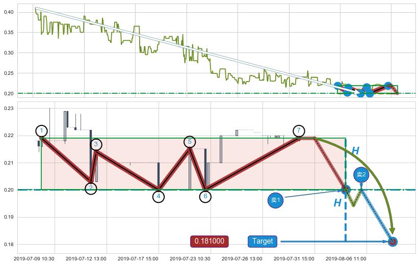 ➣ 最小中继整理跌幅→𝐇: 0.0190000 (上平行阻力线与下平行支撑线的垂直距离)