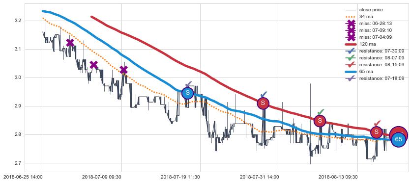 📝 多条均线形成死叉后走势最低价格达到: 3.060