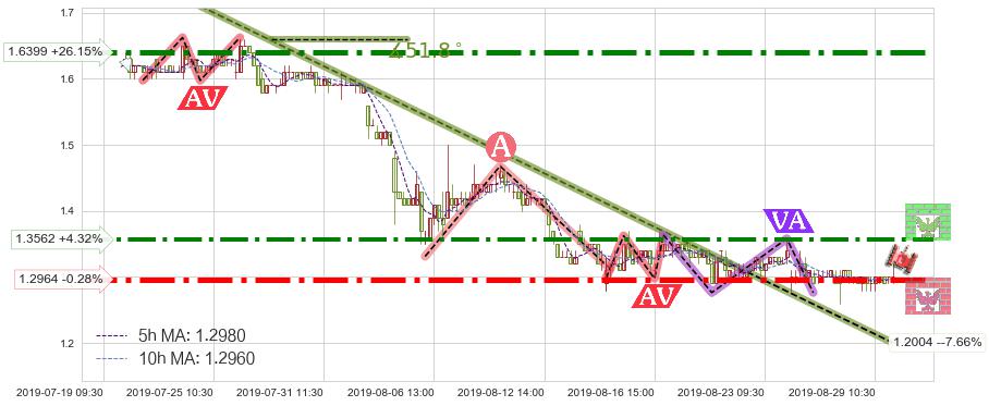 ♘ 阻力价格位1.3562,可信任强度77.83%,距离最后交易2019-08-29 15:00形成的收盘价格1.3000相差 +4.32%