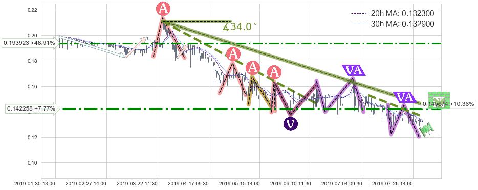 ➣ 【已确认突破】最后价格:0.132000与最小【整理】第一目标价格→(08-02:13: 0.119828 )相较: 下跌空间【中等】