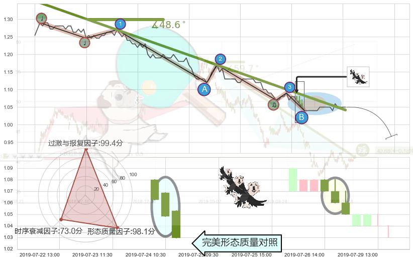 从2019-07-04 09:30至2019-07-31 09:30,共包含115个小时,阶段股价下跌-21.14%,阶段股价变动位移路程比: 1 : 3,下跌趋势角度: 48.6
