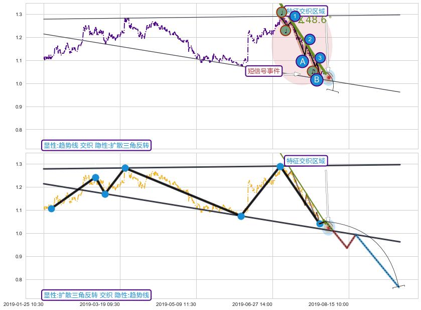 ➢ 趋势线属【短级别信号事件】扩散三角反转属【长级别信号事件】长短周期组合信号事件, 短长事件长度比15.97%
