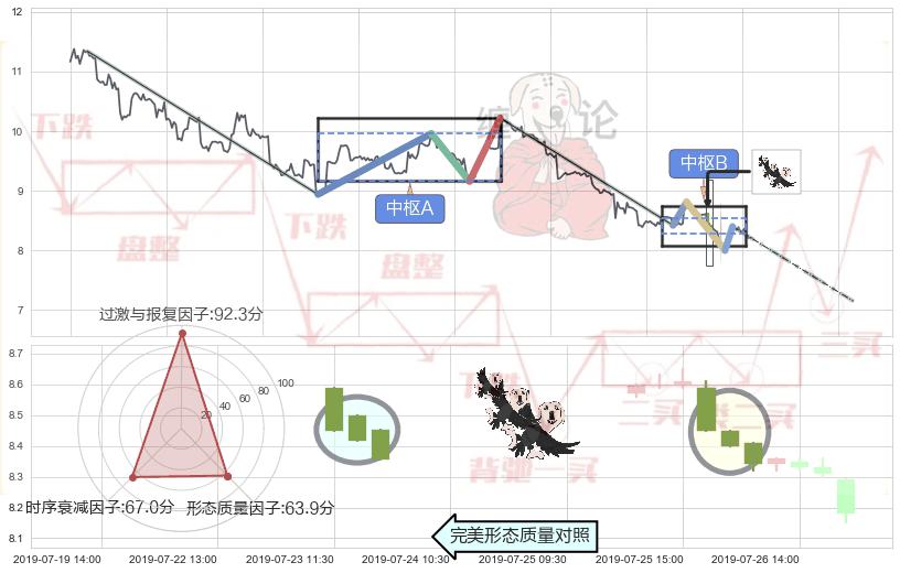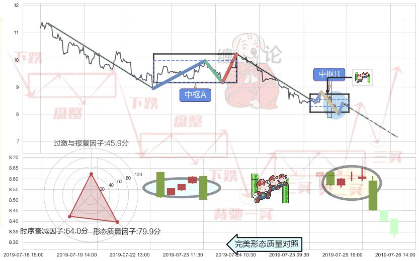 ➢ 下降三部曲(降势三鹤) 🔜 缠论中枢点破位中枢B支撑下拉 综合量化分数:45.33 【偏空】