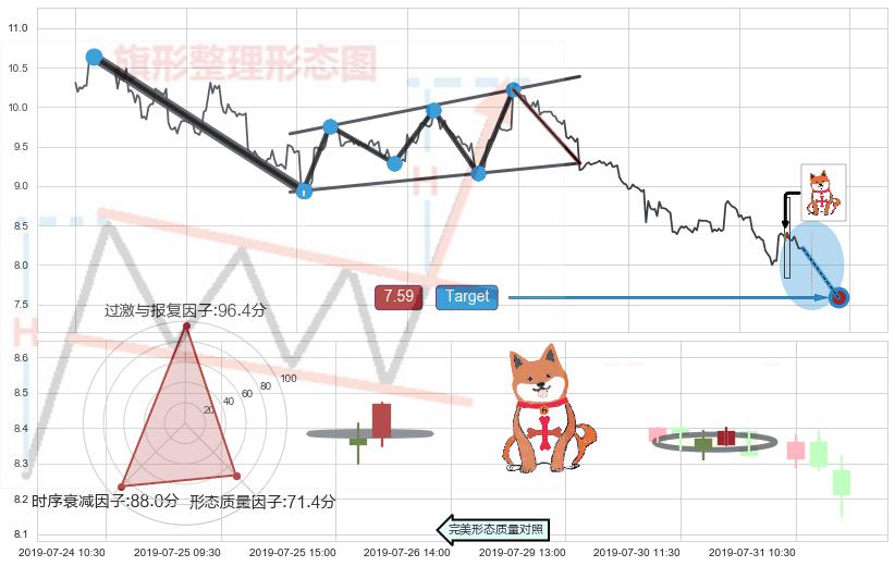 从2019-04-18 09:30至2019-07-31 15:00,共包含414个小时,阶段股价下跌-40.07%,阶段股价变动位移路程比: 1 : 7,下跌趋势角度: 37.5