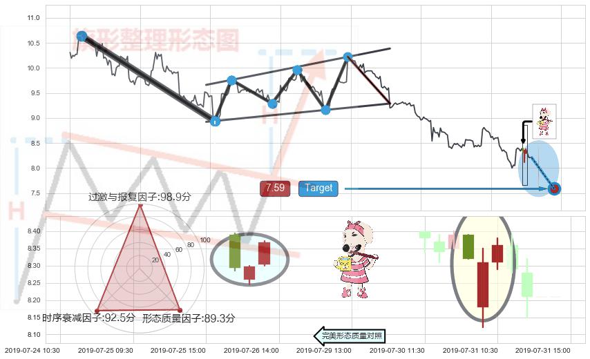 ➢ 🕰 价格走势在2019-07-25 11:30:00至2019-07-26 09:30:00期间形成下降三部曲(降势三鹤),残存影响值:-5.06