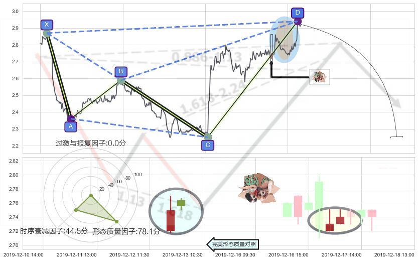 ➢ 🕰 价格走势在2019-12-17 15:00:00至2019-12-17 15:00:00期间形成单针探底(定海神针),残存影响值:3.19