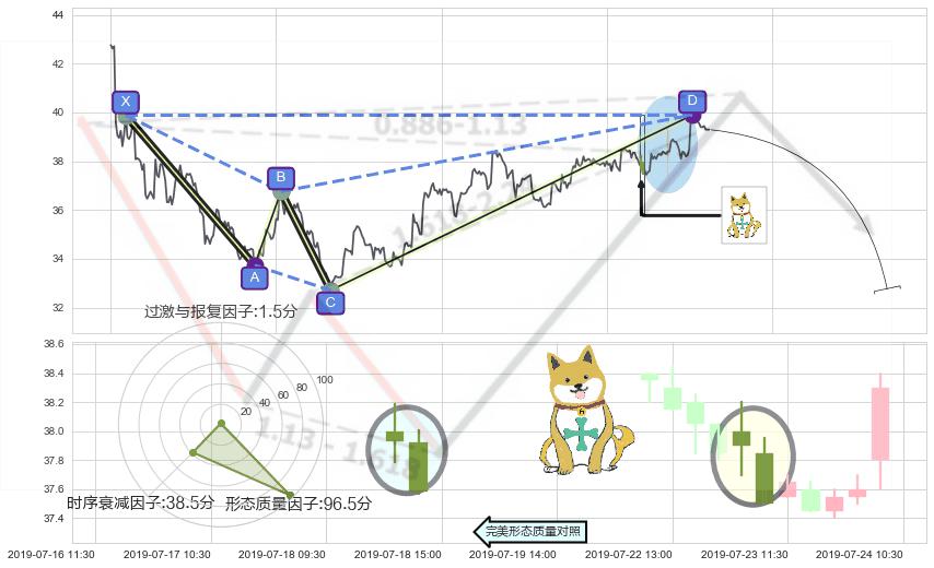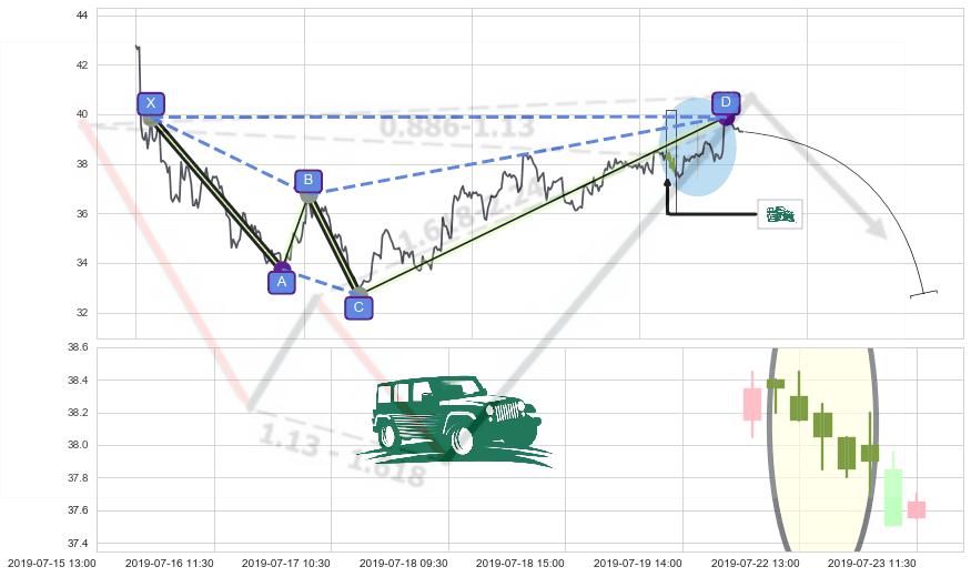 ➢ 谐波鲨鱼:已到达d点:猜想c拉升到达d点后泄力性下沉下跌(均值回复)