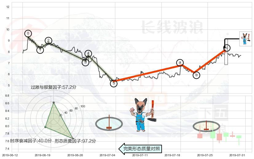 从2019-07-09 09:30至2019-07-31 15:00,共包含102个小时,阶段股价上涨23.12%,阶段股价变动位移路程比: 1 : 3