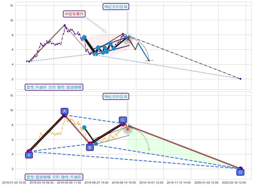 ➢ 升旗形属【中级别信号事件】谐波蝴蝶属【长级别信号事件】中长周期组合信号事件,中长事件长度比44.31%