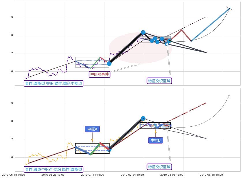➣ 缠论中枢点:猜想突破中枢B后持续拉升 → 上涨 → 突破中枢B阻力 → 持续趋势跟踪