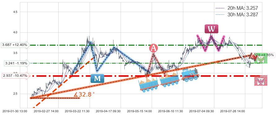 ➣ 【已确认突破】最后价格:3.280与最小【整理】第一目标价格→(08-19:12: 4.35 )相较: 上涨空间【中等】