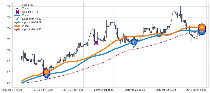 📝 多条均线形成死叉后走势最低价格达到: 7.32