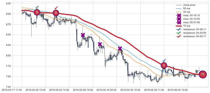 ➣ 75小时均线于(07-08 15:00: 8.09)形成【死叉】基于【死叉历史模型】预测死叉后最低波谷价格: 7.68, 死叉后最低价格7.32,已经下跌超出预测最低波谷价格, 预期反弹