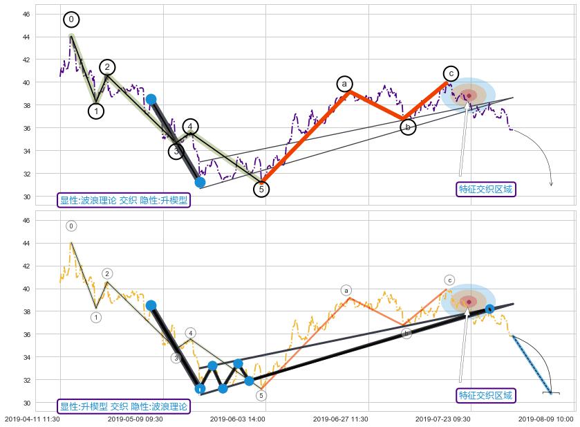➢ 波浪理论与升楔型信号事件周期长度级别相同,同周期信号事件