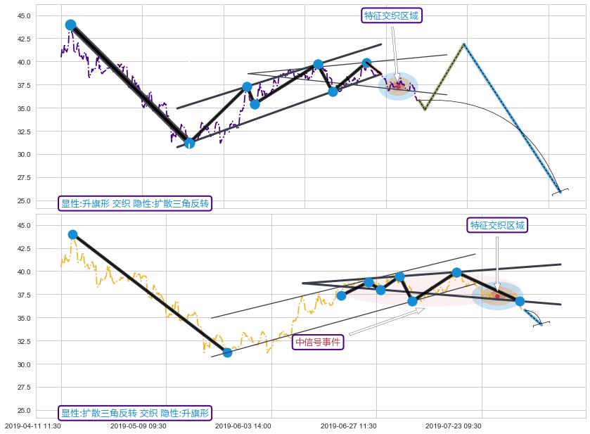 ➢ 扩散三角反转属【中级别信号事件】升旗形属【长级别信号事件】中长周期组合信号事件,中长事件长度比44.53%