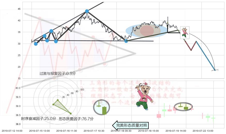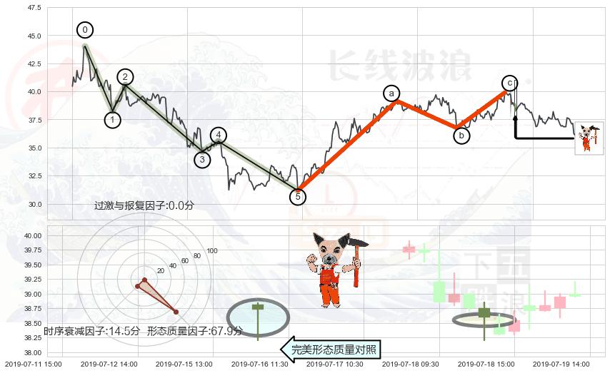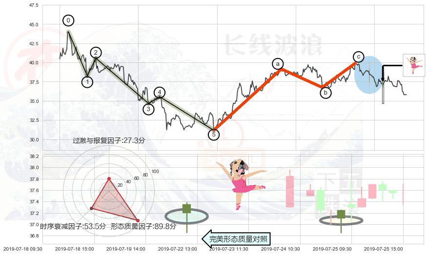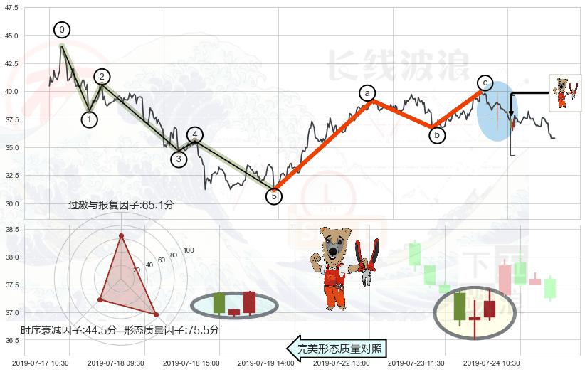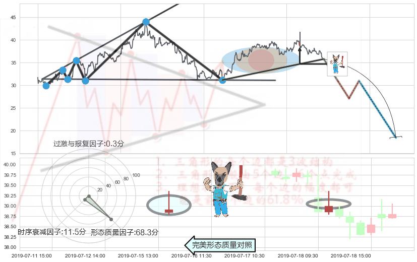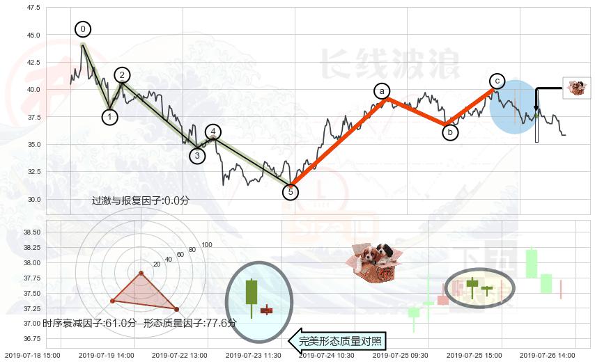 从2019-07-23 13:00至2019-07-31 15:00,共包含39个小时,阶段股价下跌-2.76%,阶段股价变动位移路程比: 1 : 7
