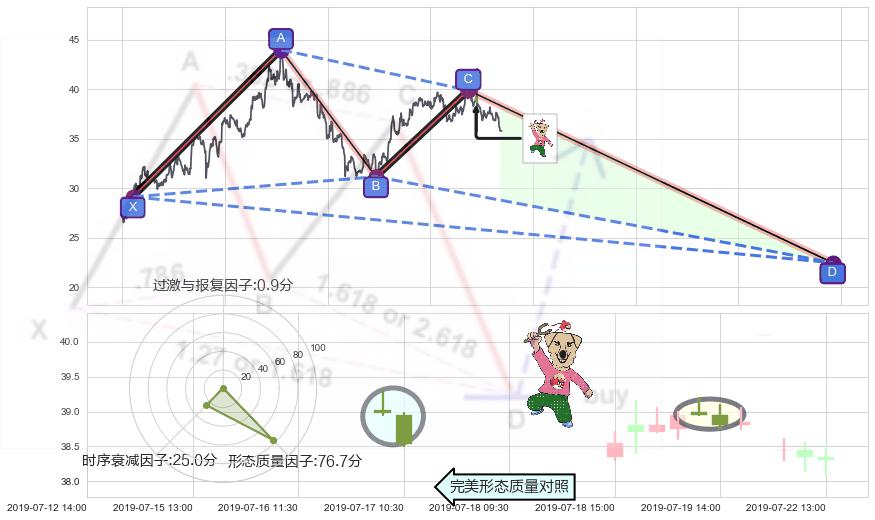 ➢ 谐波蝴蝶c拐点下跌阻力 🔜 波浪理论c点反弹终止反转下跌 综合量化分数:39.32 【偏空】