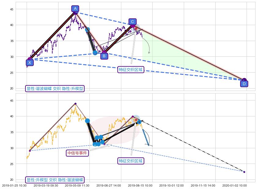 ➢ 升旗形属【中级别信号事件】谐波蝴蝶属【长级别信号事件】中长周期组合信号事件,中长事件长度比53.33%