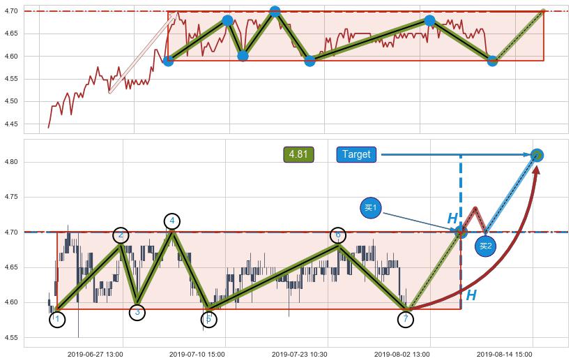 ➣ 上涨矩形整理:猜想临近关键阻力位突破点 → 临近拐点上涨 → 机会信号 → 大趋势均值回复