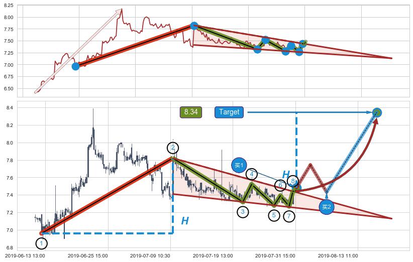 ➣ 【仅预测突破】最后价格:7.44与预测突破价格:7.48→【空间临近】后续最小【整理】第一目标价格→(08-15:14: 8.34 )