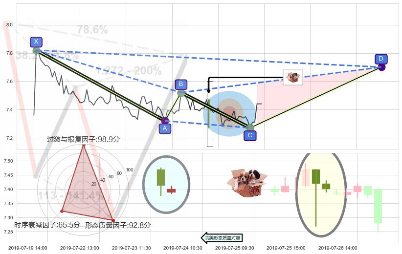 ➢ 🕰 价格走势在2019-07-26 09:30:00至2019-07-26 10:30:00期间形成底部尽头线(上山虎),残存影响值:7.15