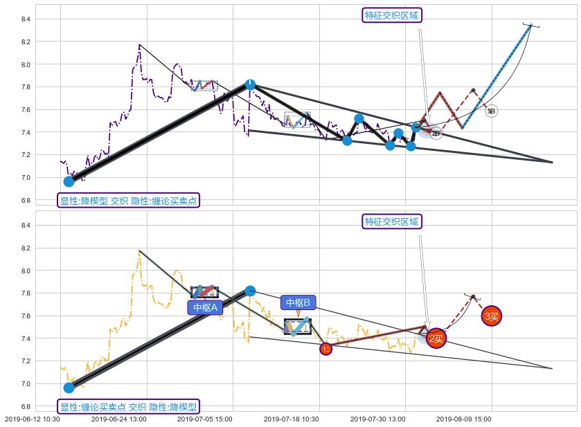 ➢ 降楔型与缠论买卖点信号事件周期长度级别相同,同周期信号事件