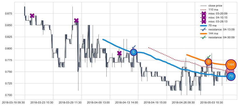 📝 多条均线形成死叉后走势最低价格达到: 0.5400