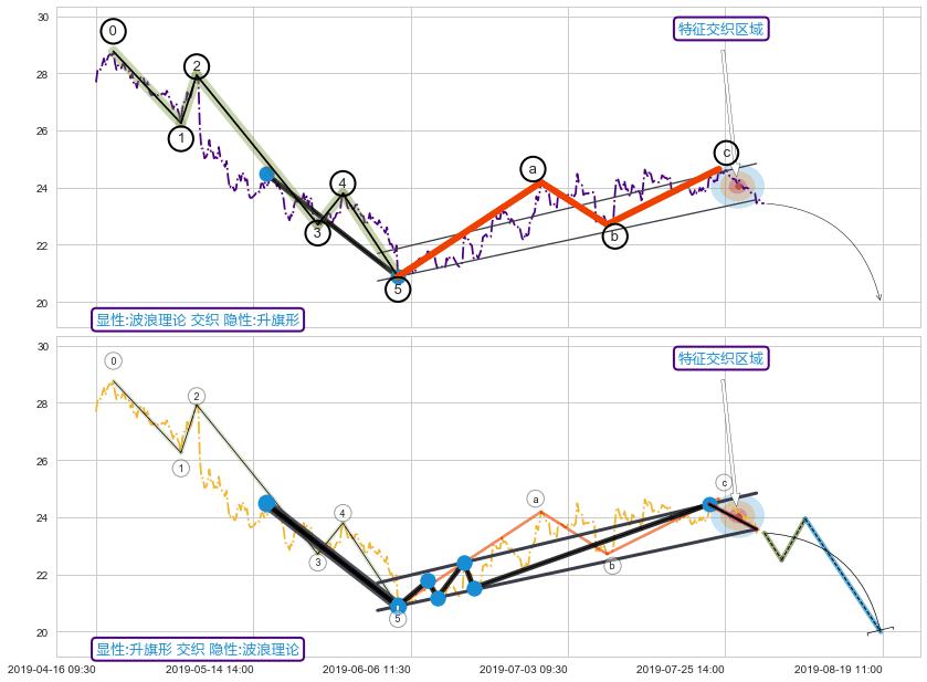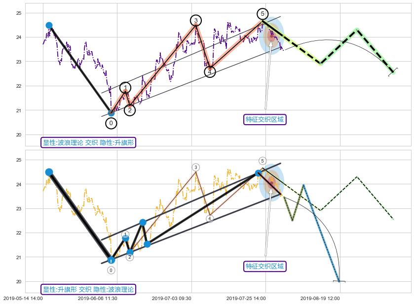 ➢ 波浪理论与升旗形信号事件周期长度级别相同,同周期信号事件