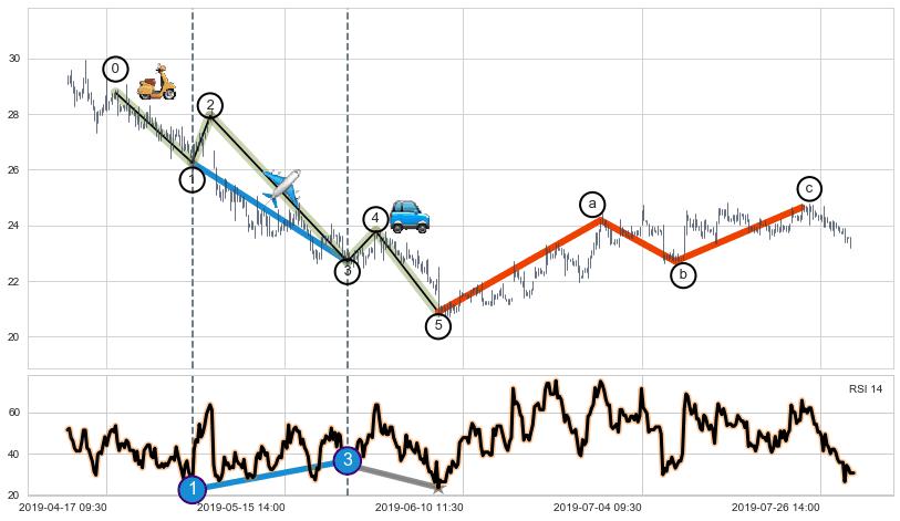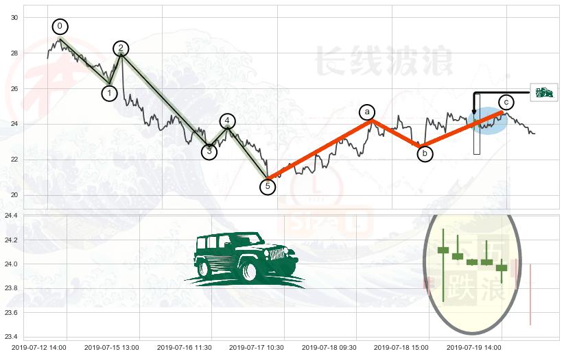 ➣ 波浪理论:猜想击穿突破c点后继续上涨 → 上涨 → 机会信号 → 小趋势跟踪