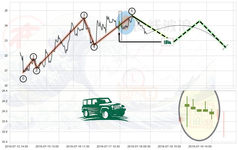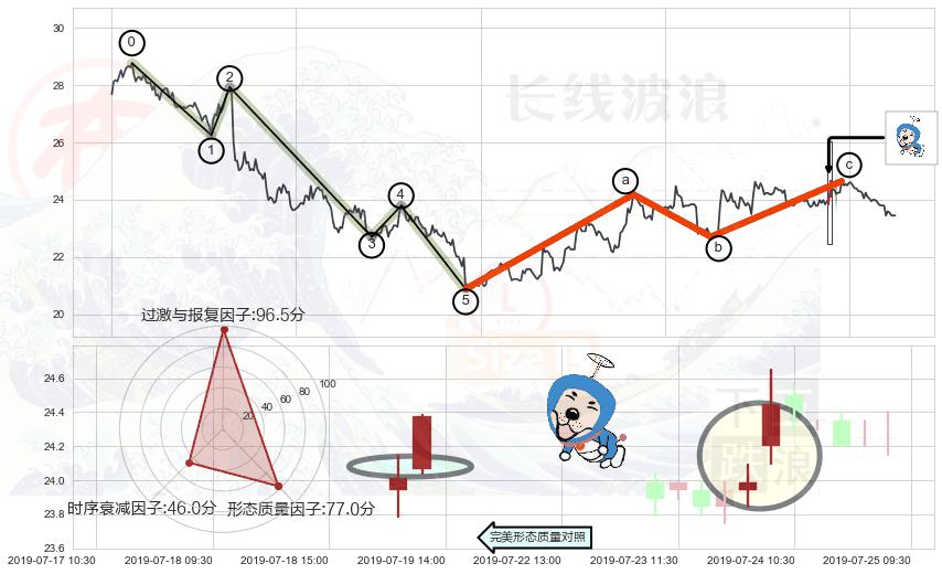 ➢ 🕰 价格走势在2019-07-23 15:00:00至2019-07-24 09:30:00期间形成上涨螺旋桨形态,残存影响值:6.01