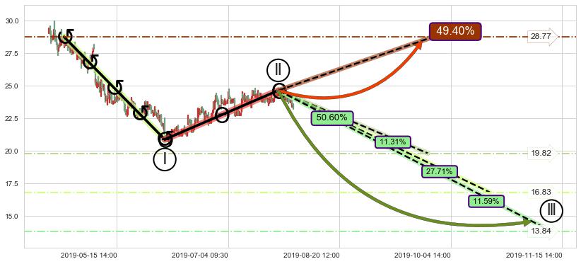➣ 大趋势循环浪继续向下概率50.60%