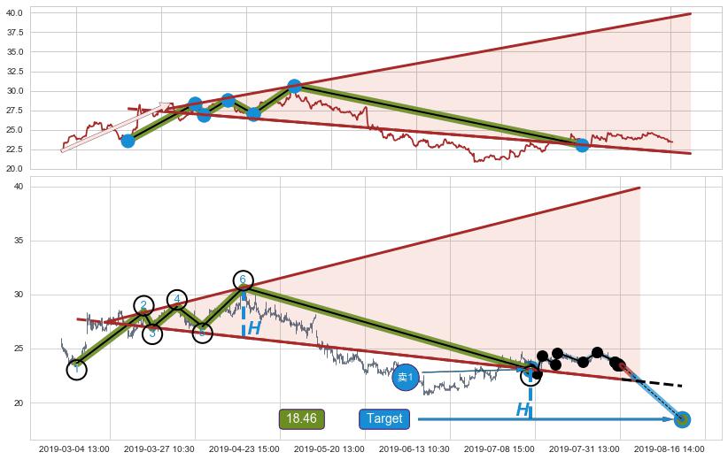 ➣ 【已确认突破】最后价格:23.45与最小【反转】第一目标价格→(08-16:14: 18.46 )相较: 下跌空间【较大】