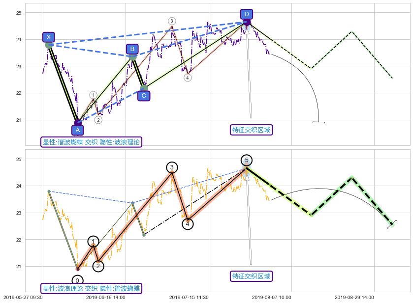 ➢ 谐波蝴蝶与波浪理论信号事件周期长度级别相同,同周期信号事件