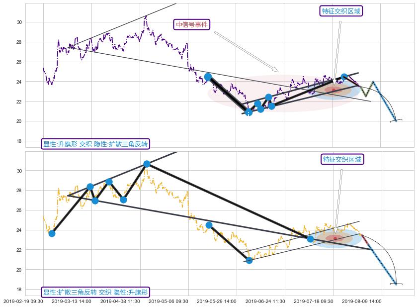 ➢ 升旗形属【中级别信号事件】扩散三角反转属【长级别信号事件】中长周期组合信号事件,中长事件长度比58.50%