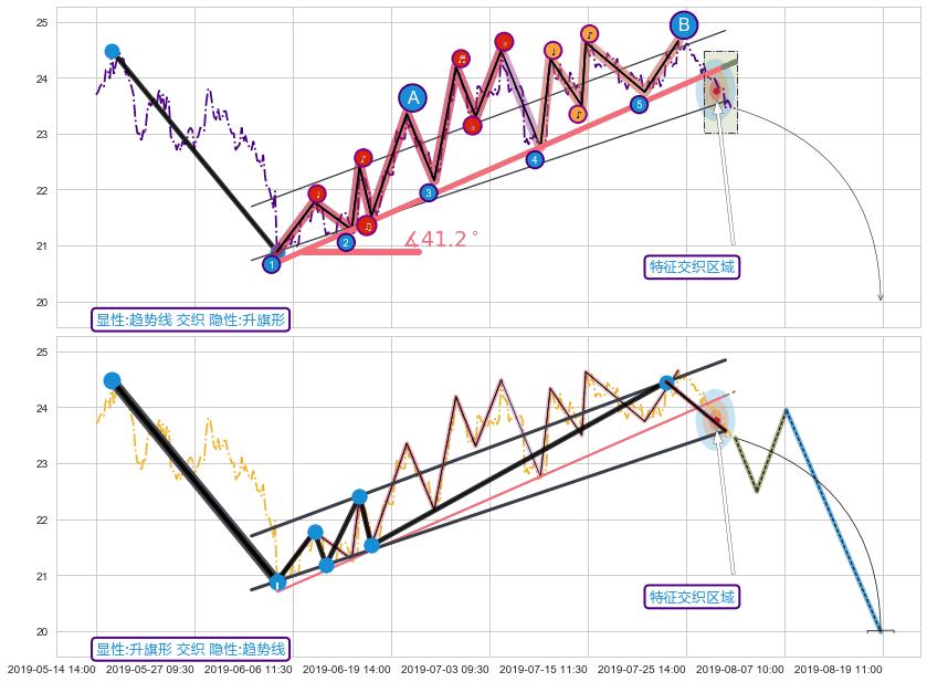 ➢ 趋势线与升旗形信号事件周期长度级别相同,同周期信号事件