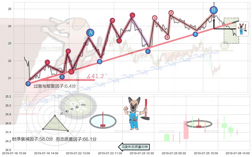 ➢ 2019-06-05 09:30-2019-07-30 15:00上升趋势存在反转[风险],其原上升趋势的支撑位(24.28)已破位[强阻力信号],原上升趋势角度: 41.2˚