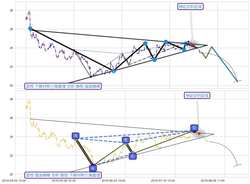 ➢ 下降对称三角整理与谐波蝴蝶信号事件周期长度级别相同,同周期信号事件