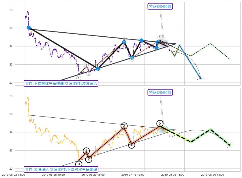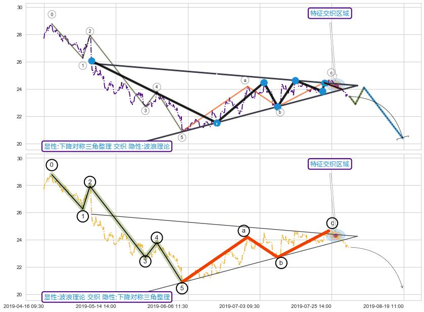 ➢ 下降对称三角整理与波浪理论信号事件周期长度级别相同,同周期信号事件