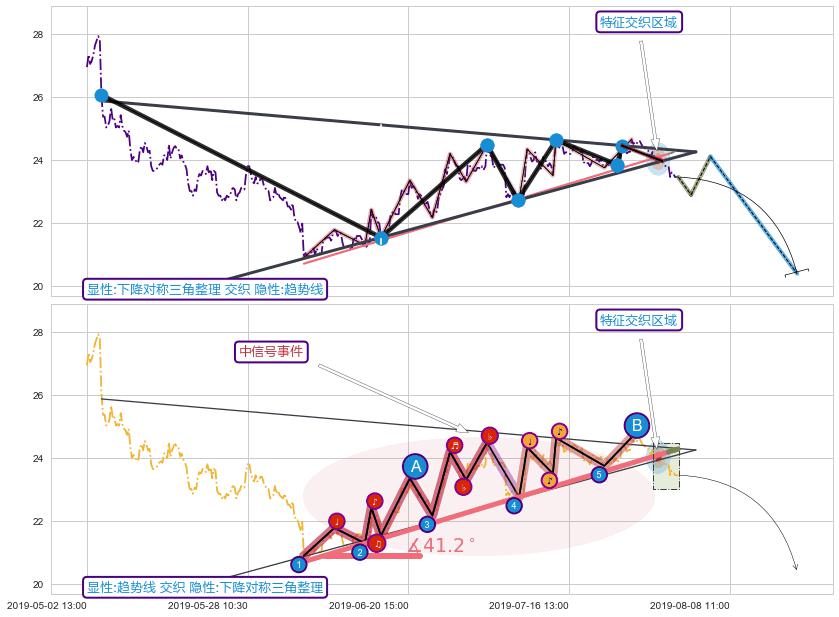 ➢ 趋势线属【中级别信号事件】下降对称三角整理属【长级别信号事件】中长周期组合信号事件,中长事件长度比62.57%