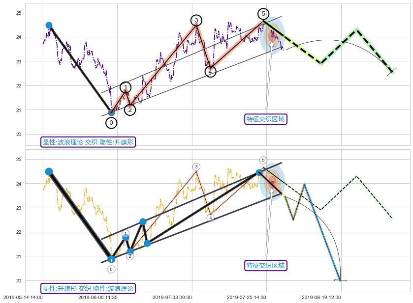 ➢ 波浪理论与升旗形信号事件周期长度级别相同,同周期信号事件