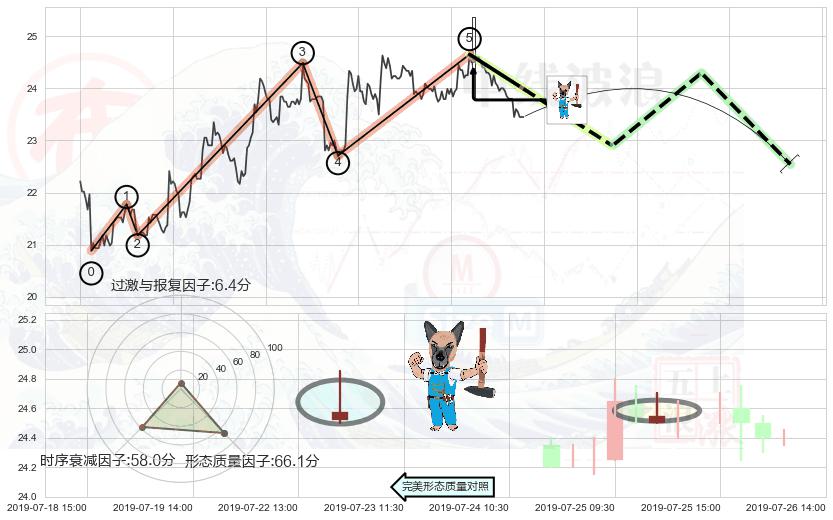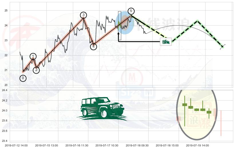 ➢ 🕰 价格走势在2019-07-19 09:30:00至2019-07-19 14:00:00期间形成高档五阴线,残存影响值:-1.82