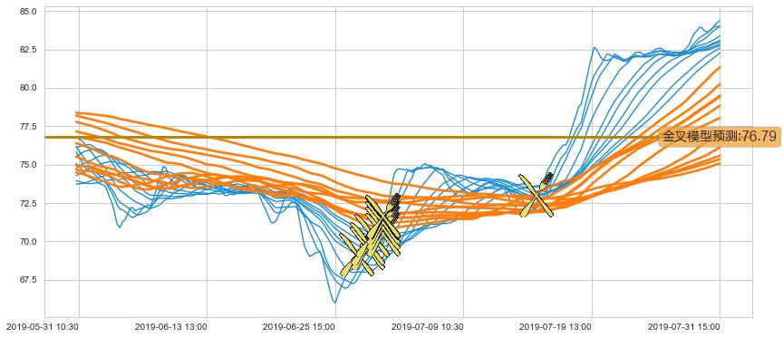 ➣ 90小时均线于(06-28 15:00: 71.54)形成【金叉】基于【金叉历史模型】预测金叉后最高波峰价格: 78.51, 金叉后最高价格84.55,已经上涨超出预测最高波峰价格, 预期回调
